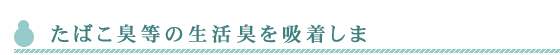 たばこ臭・ペット臭・トイレ臭・生ゴミ臭などの生活臭を吸着し、浄化する機能を有しています。
