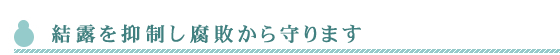 高湿度環境は建材の腐食やカビの発生原因となり、人の健康被害だけでなく、家や建物の傷みを誘引します。 漆喰塗料は消石灰の多孔質構造によって室内の湿気を吸湿、また放湿する機能を有していることから、室内湿度のバランスを保ち、結露を抑制する機能があります。 こうした抗菌機能は、住宅だけでなく病院・福祉施設・学校なの病気に対する抵抗力の弱い方が集まる場所では特に威力を発揮します。